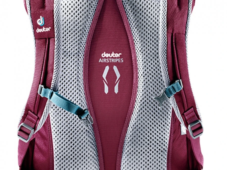 means less sweating: Two air channeled foam strips and an air mesh cover ensure as little back contact as possible.